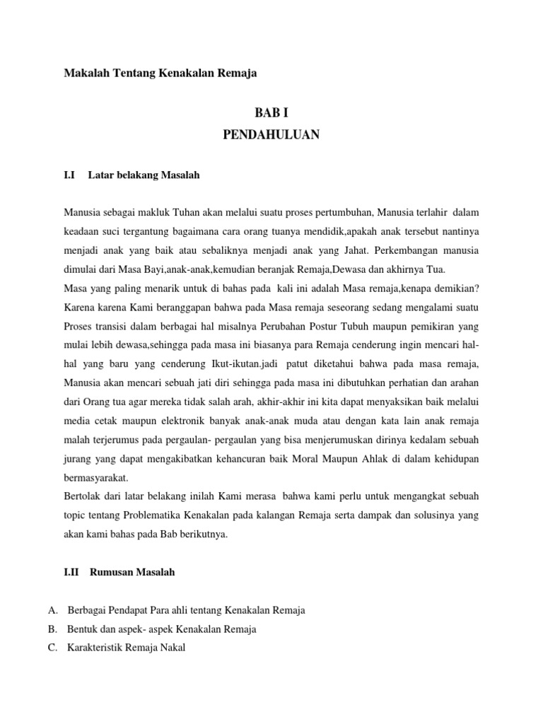 Makalah Kenakalan Remaja Doc Pdf Download Contoh Makalah Lengkap